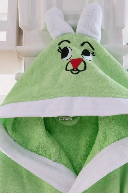 روب حمام أطفال بطاقية - لون أخضر