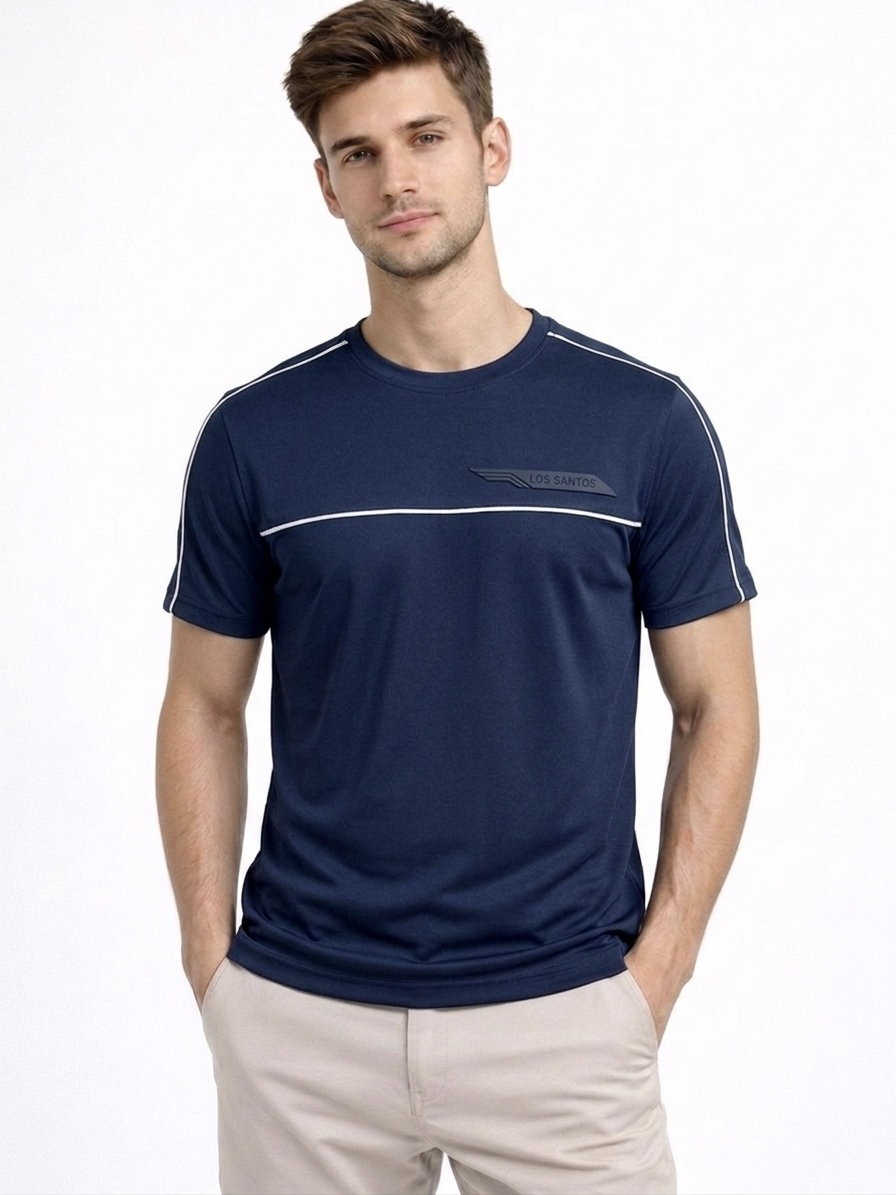 بلوزه نص كم رجالي قبة مدورة - لون كحلي 451