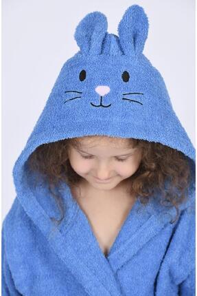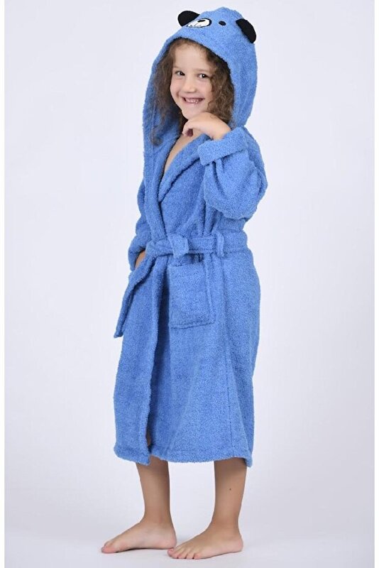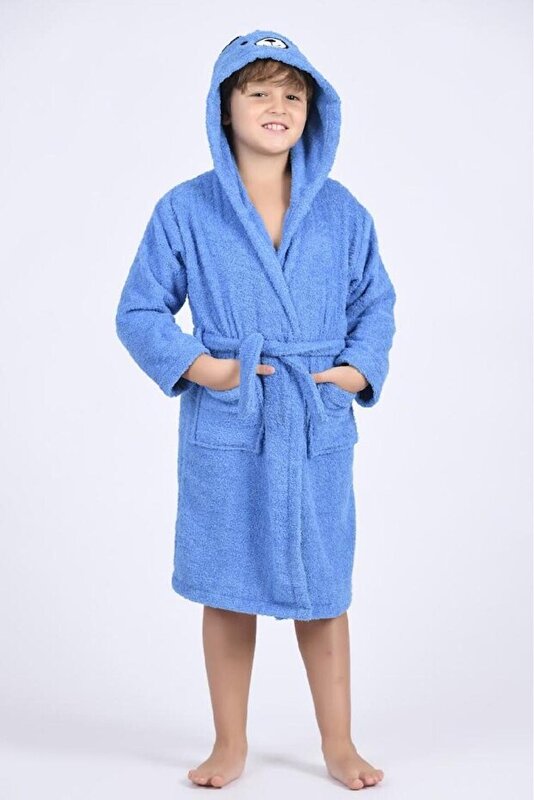 روب حمام أطفال بطاقية اشكال - لون أزرق
