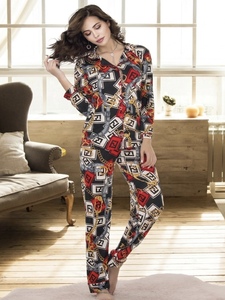 بيجاما ستاتي قطن بلوزه بازرار أكمام طويله 041