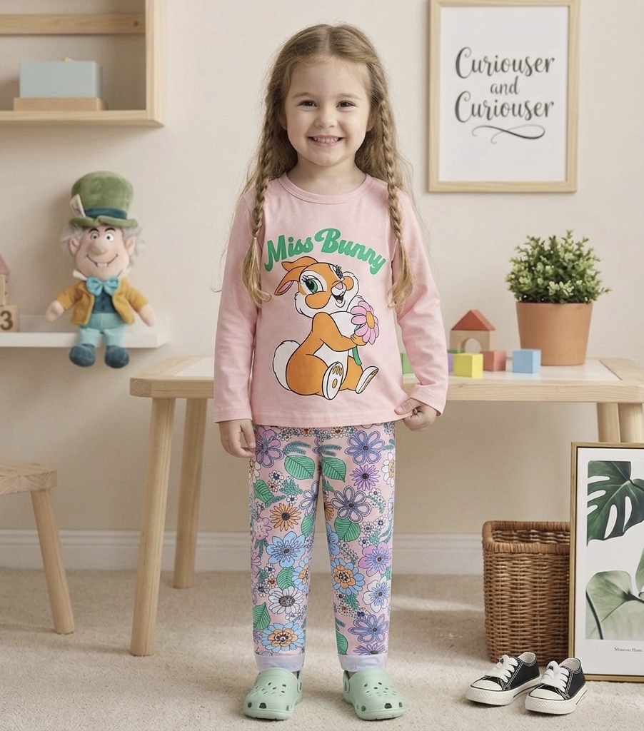 Girls' cotton pajamas, long-sleeved button-up top, 2208
