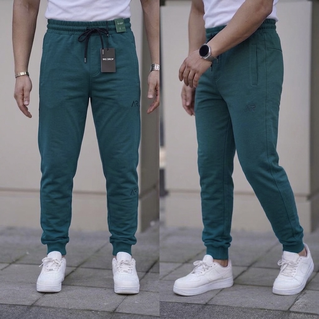 Men's cotton sports pants - petrol blue