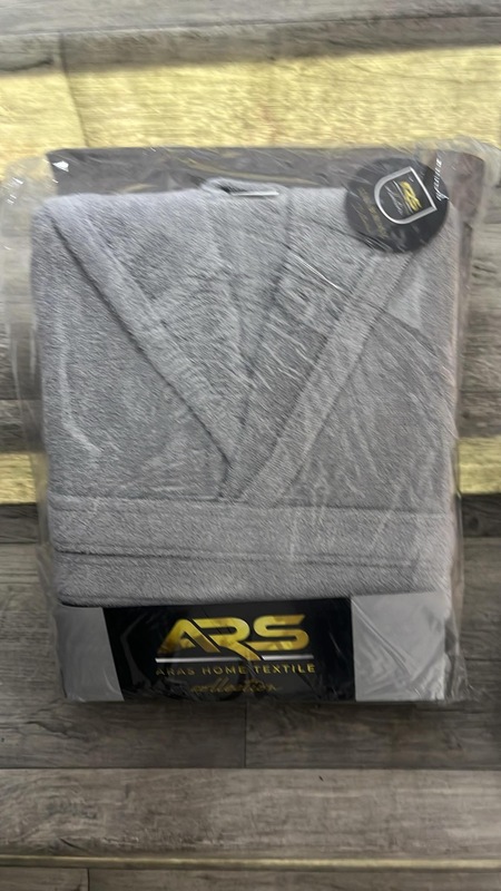 חלוק רחצה כותנה עם קפוצ'ון - אפור