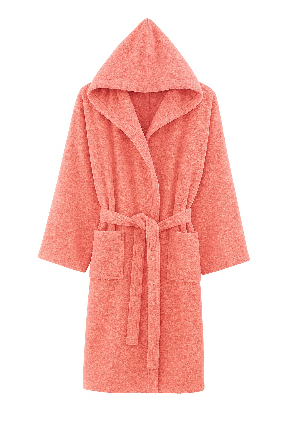חלוק רחצה כותנה עם קפוצ'ון - צבע ורוד