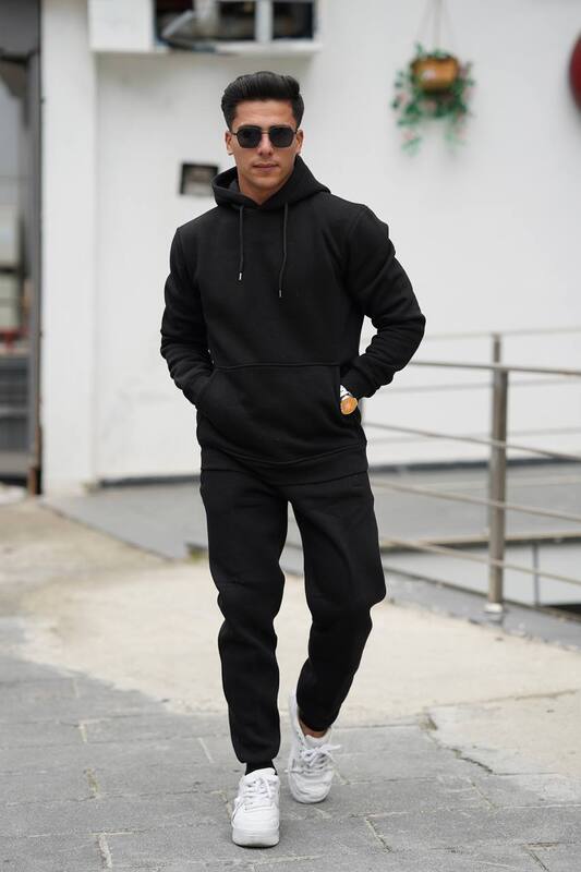מעיל טרנץ' חורף לגברים עם בטנה - שחור