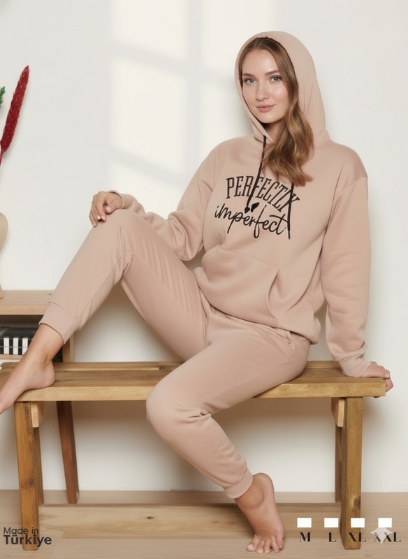 פיג'מת טרנינג חורף לנשים - בז' 701