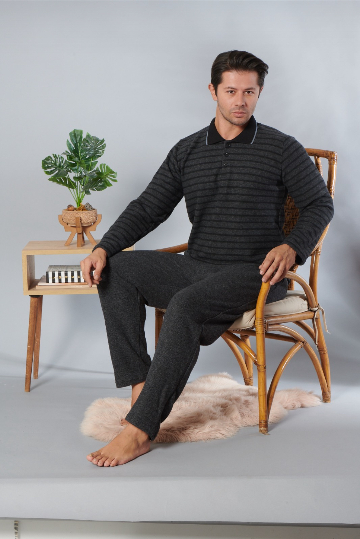 פיג'מת חורף לגברים עם צווארון מכופתר - אפור 253