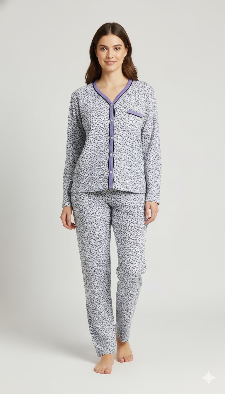 פיג'מת חורף לנשים - ורוד וכחול נייבי