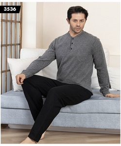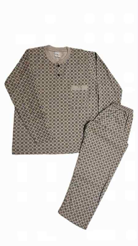 פיג'מת כותנה ארוכת שרוולים לגברים - אפורה