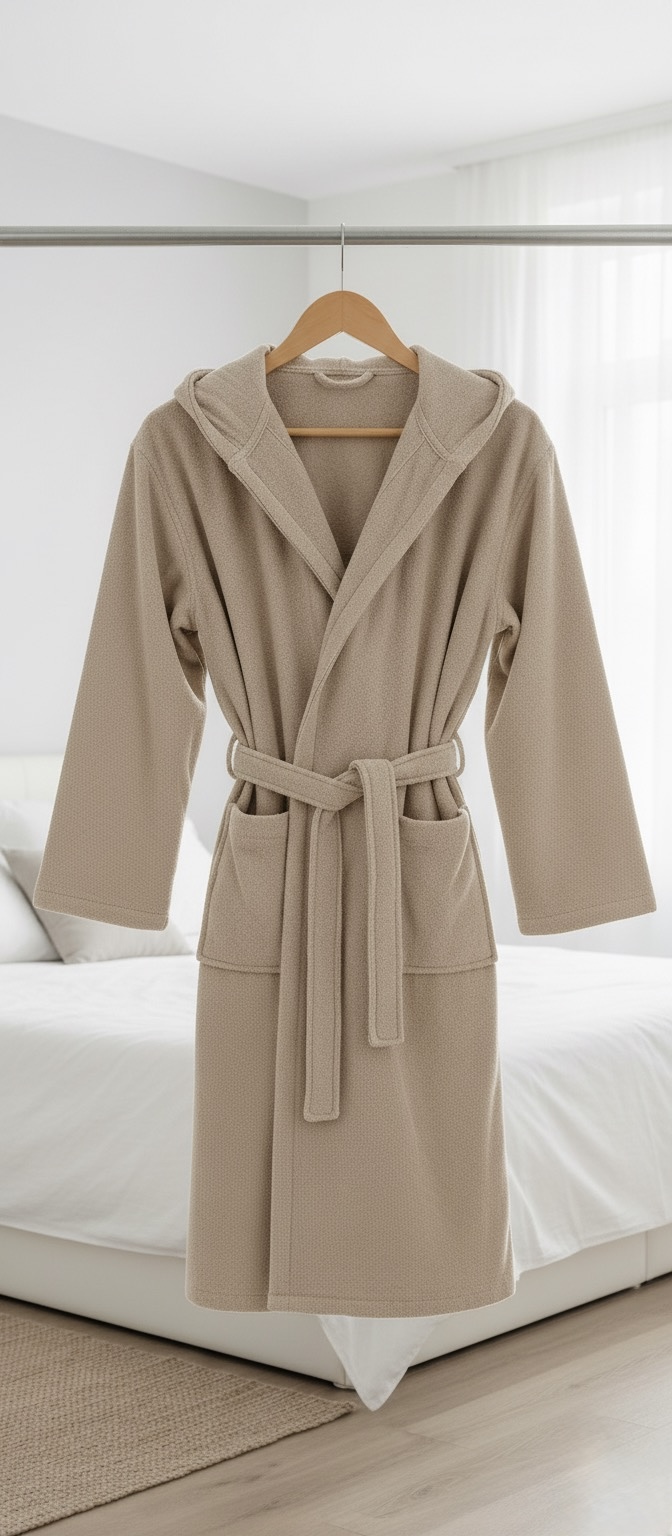 חלוק רחצה כותנה עם קפוצ'ון - צבע בז'