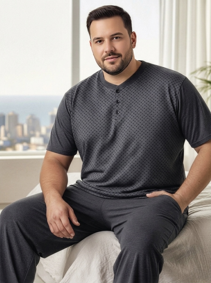 פיג'מת כותנה לגברים עם שרוולים ארוכים 055