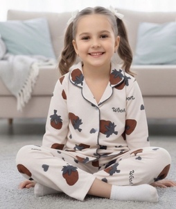 פיג'מת כותנה לבנות, חולצה מכופתרת עם שרוולים ארוכים, 2208