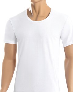 גופיית גברים עם חצי שרוול עם צווארון עגול רחב - צבע לבן