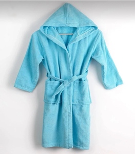חלוק רחצה לנוער עם קפוצ'ון מכותנה - טורקיז