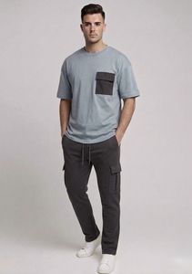 חולצת טריקו חצי שרוול ומכנסיים קצרים לגברים - כחול